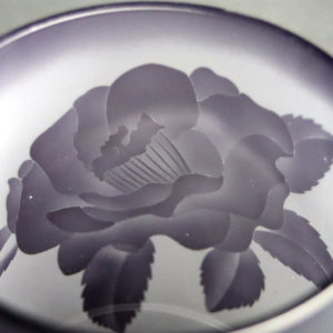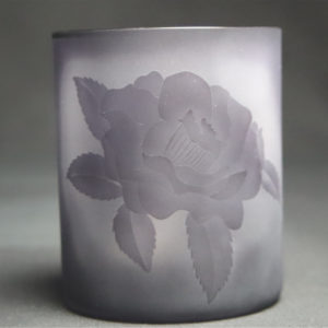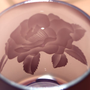 ツバキの花を被せガラスに彫る