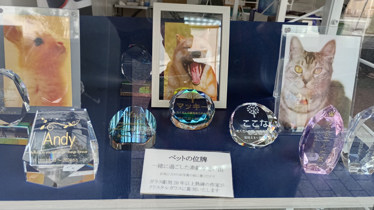 ブラスト工房はチャレンジショップで展示中 ペットの位牌