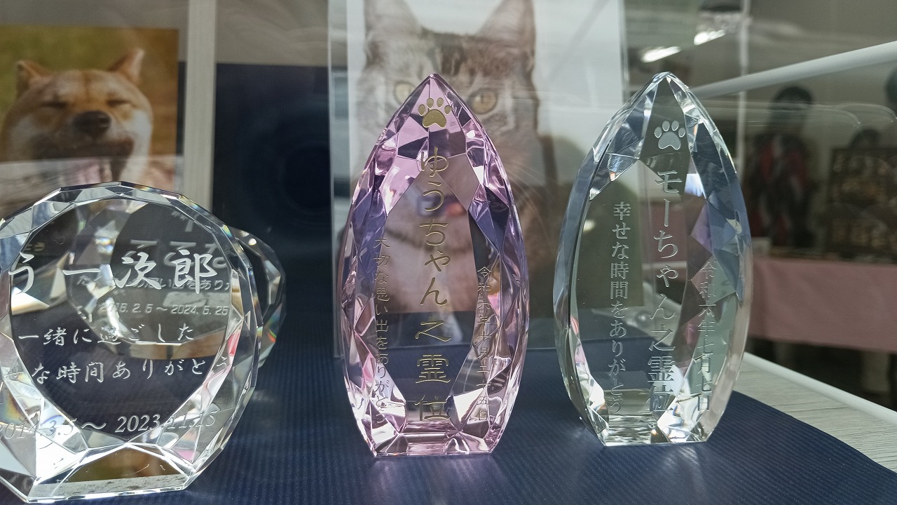 ぜひ蕨西口のチャレンジショップで、クリスタルガラス位牌の透明感ある輝きを