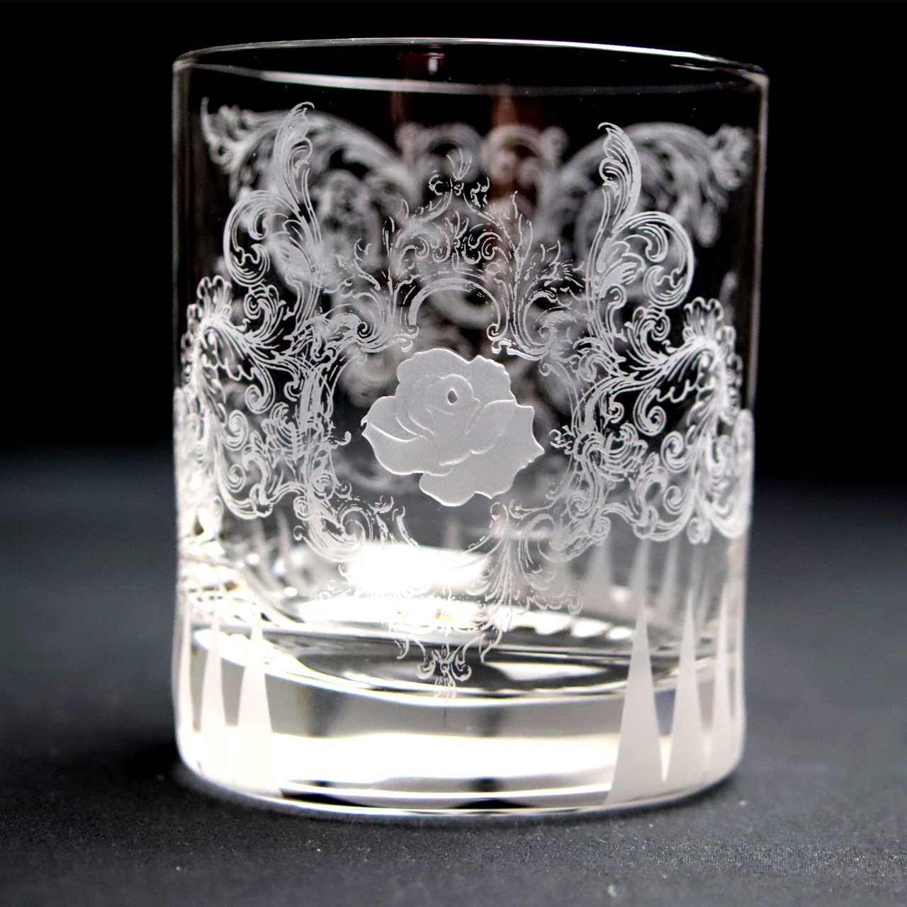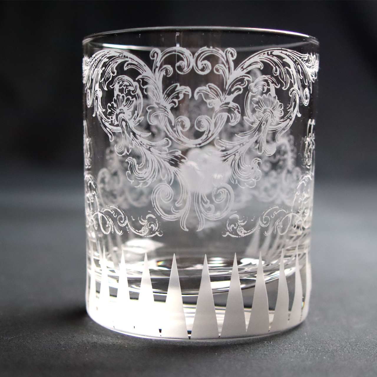 ロックグラスに繊細なデザインを加工する エレガントなロックグラス